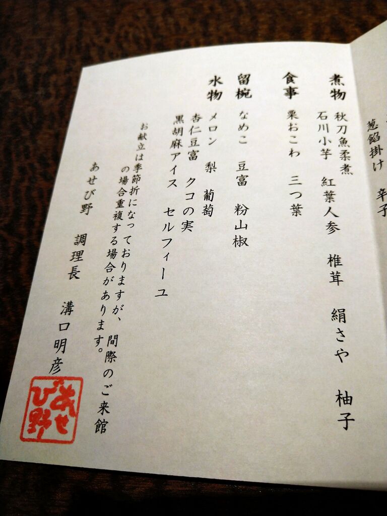 2021年11月13日 土曜日 夜 谷川の湯 あせび野にて