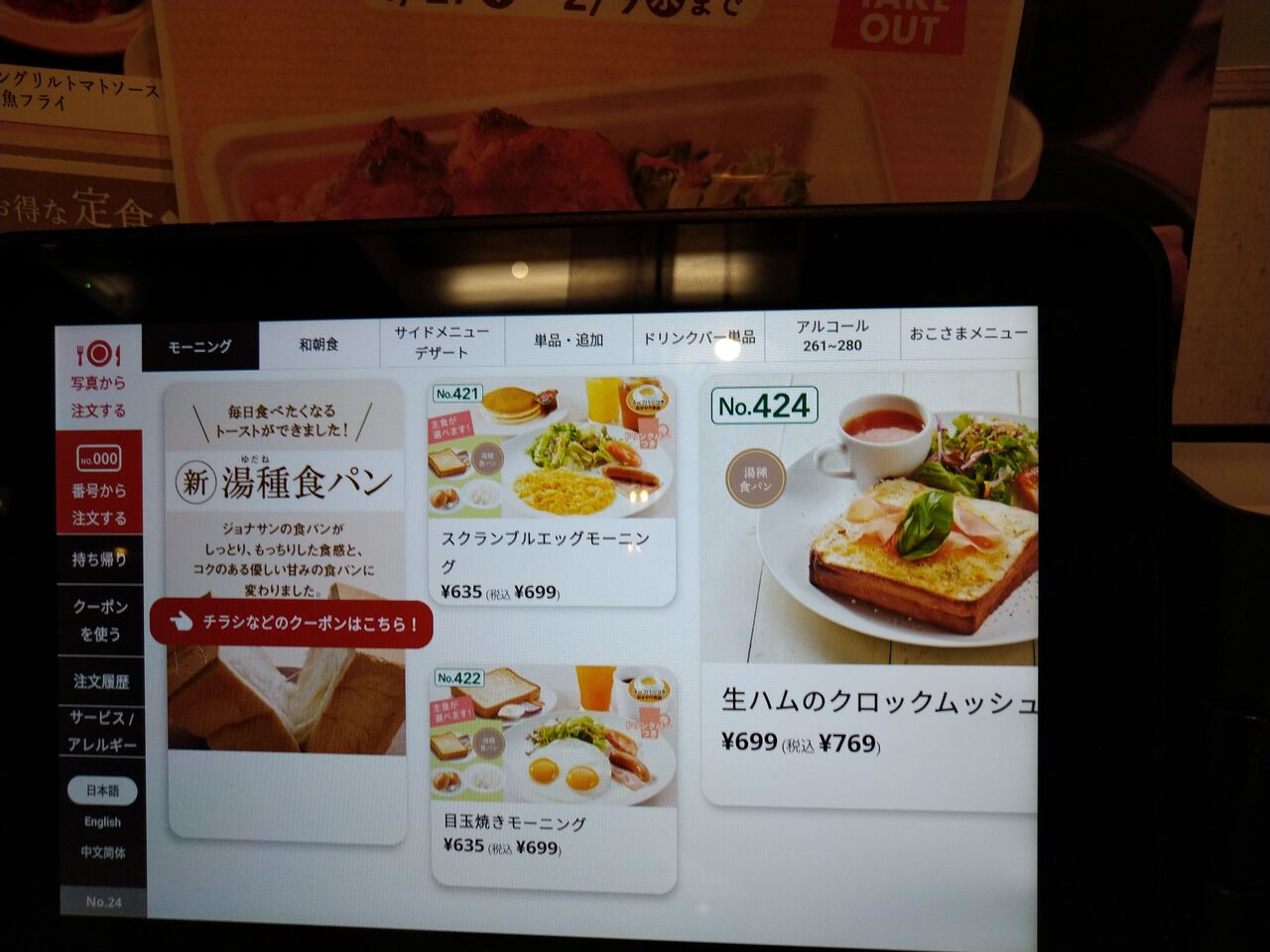 今日は神谷町のジョナサンで朝食を食べた。