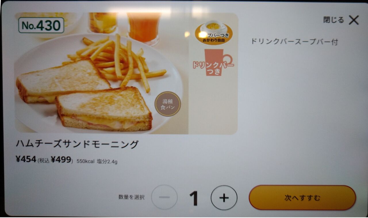 となりのハムチーズサンドモーニング(税込499円)を注文しよう。