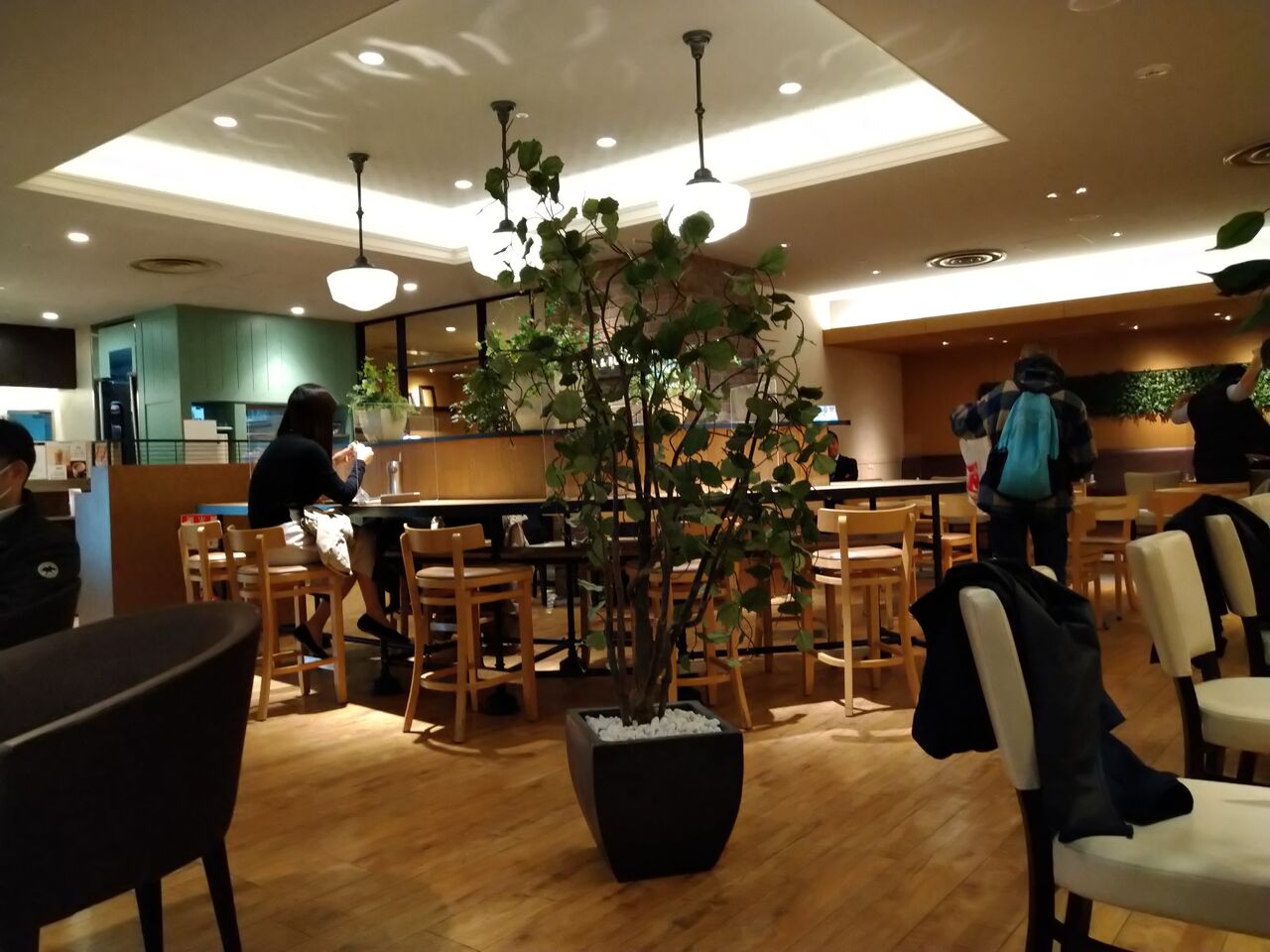 奥の席に座る。