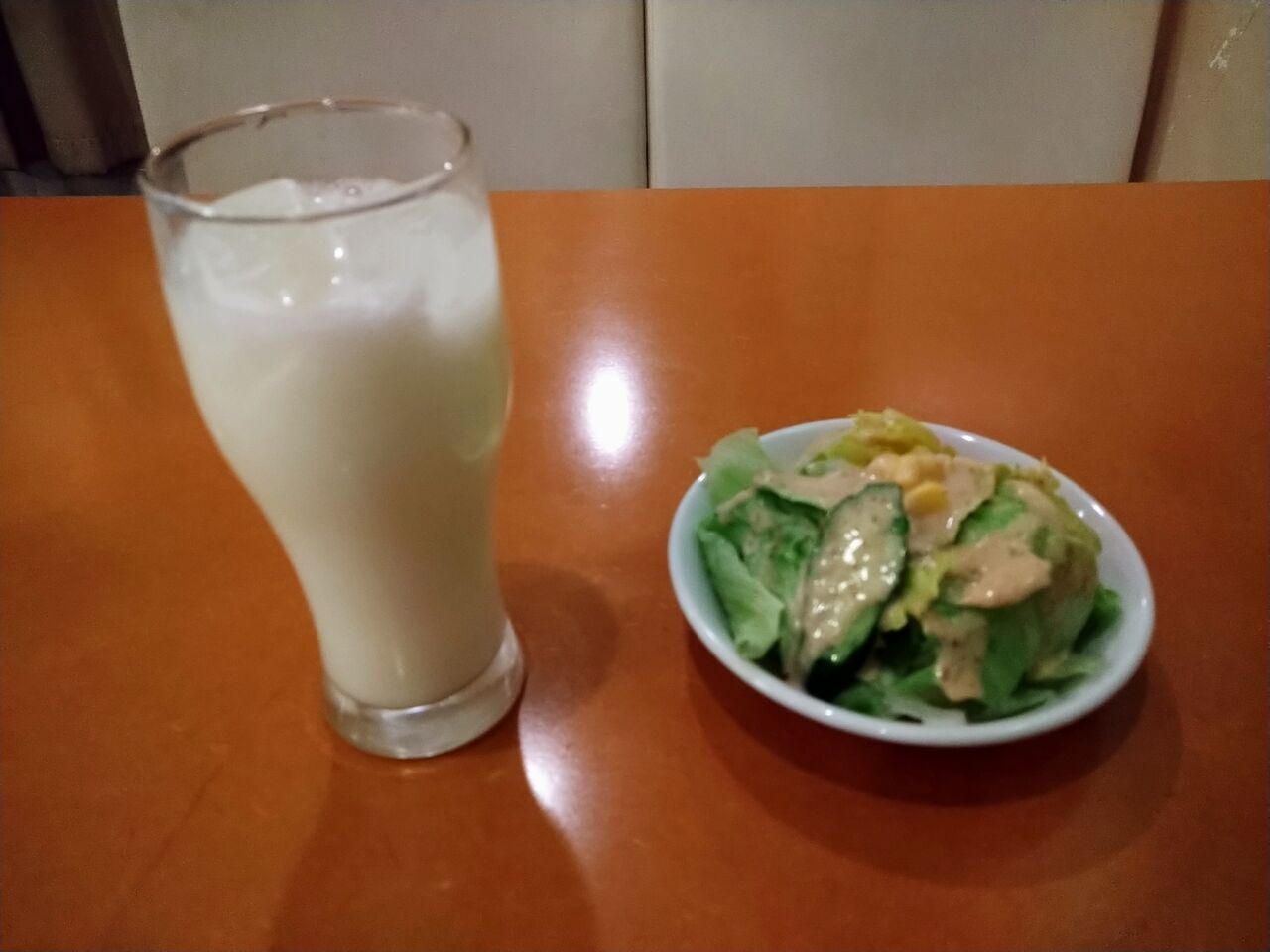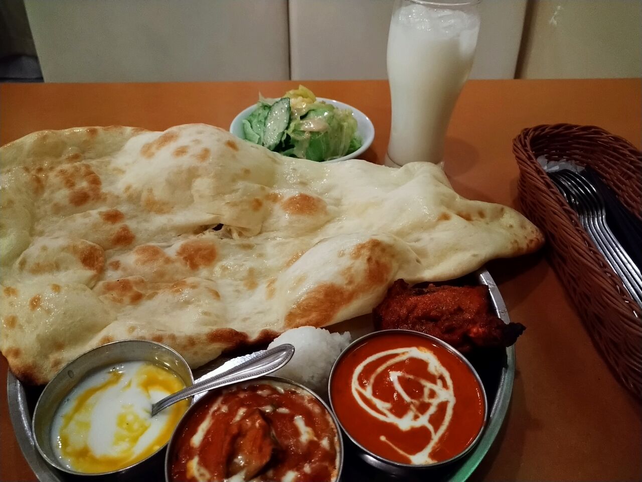 5分ほどしてラッシーとサラダが出てきた。