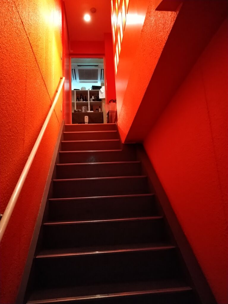 支払いを済ませて横を見ると・・・階段があった。