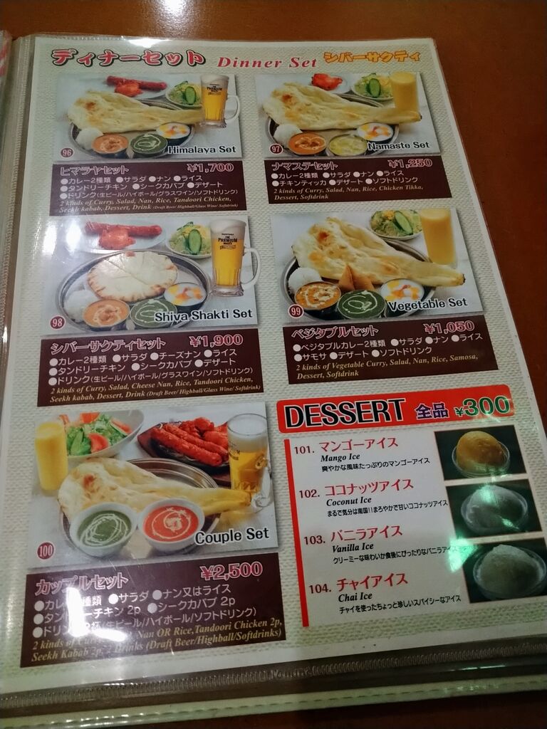 ディナーセットの一つにナマステ・セットがあった。
