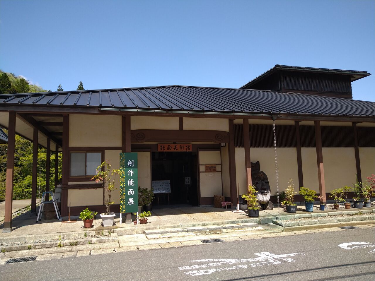 駐車場のそばには能面美術館と