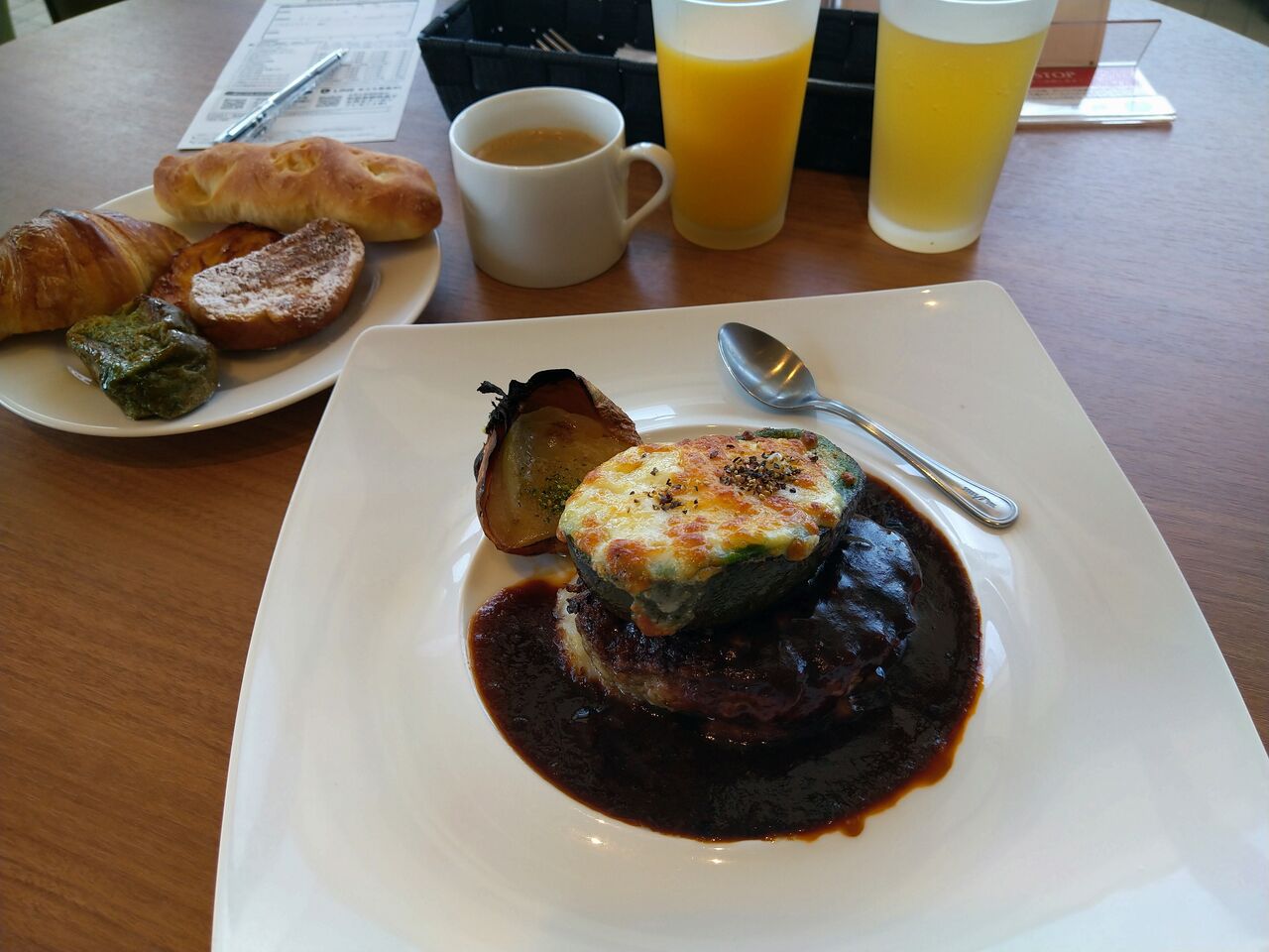 焼きたてパンとドリンクバーのセットを付けて注文した。