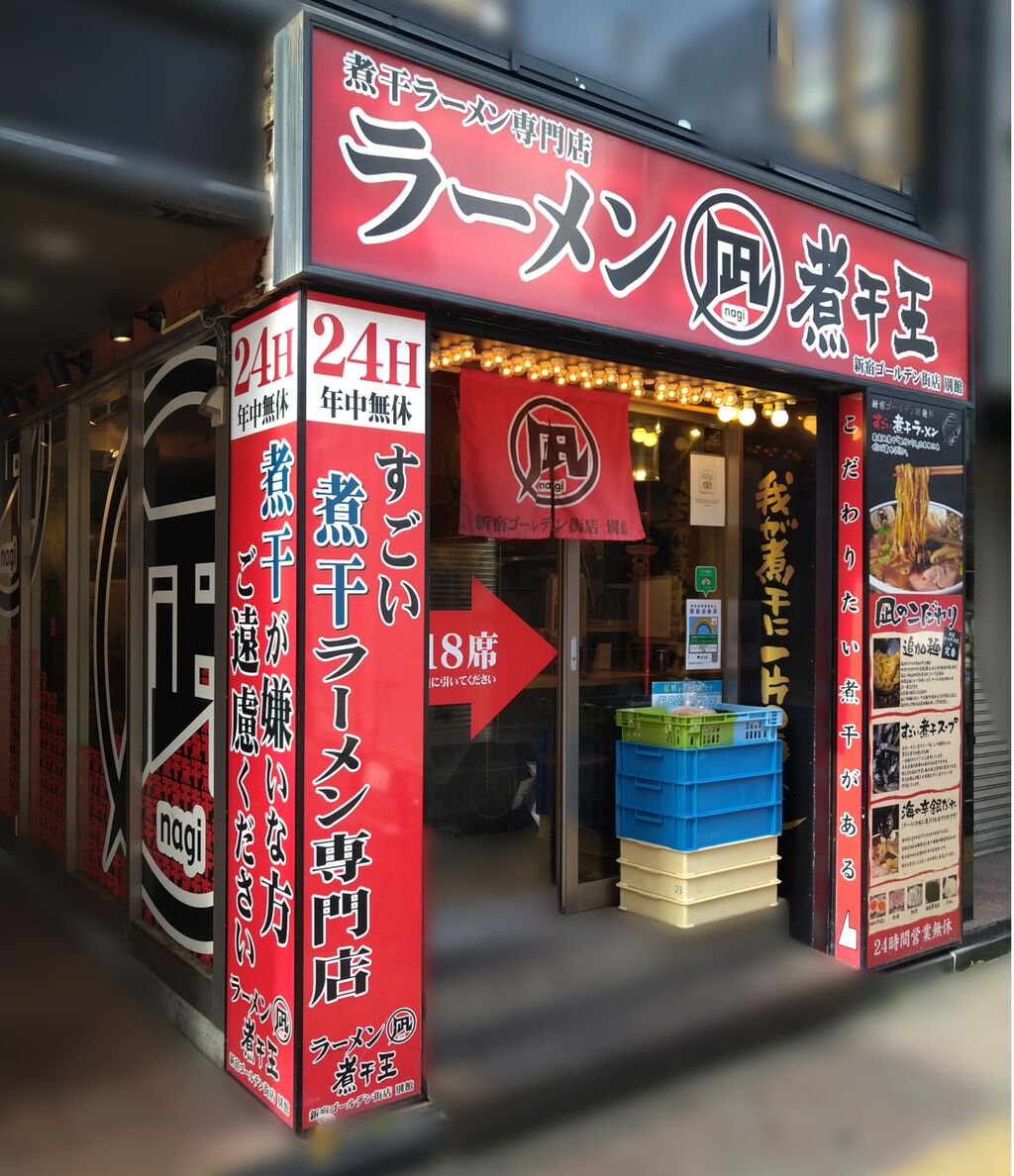 ここから歩いて2~3分のところにすごい煮干しラーメン凪、新宿ゴールデン街本店もある。