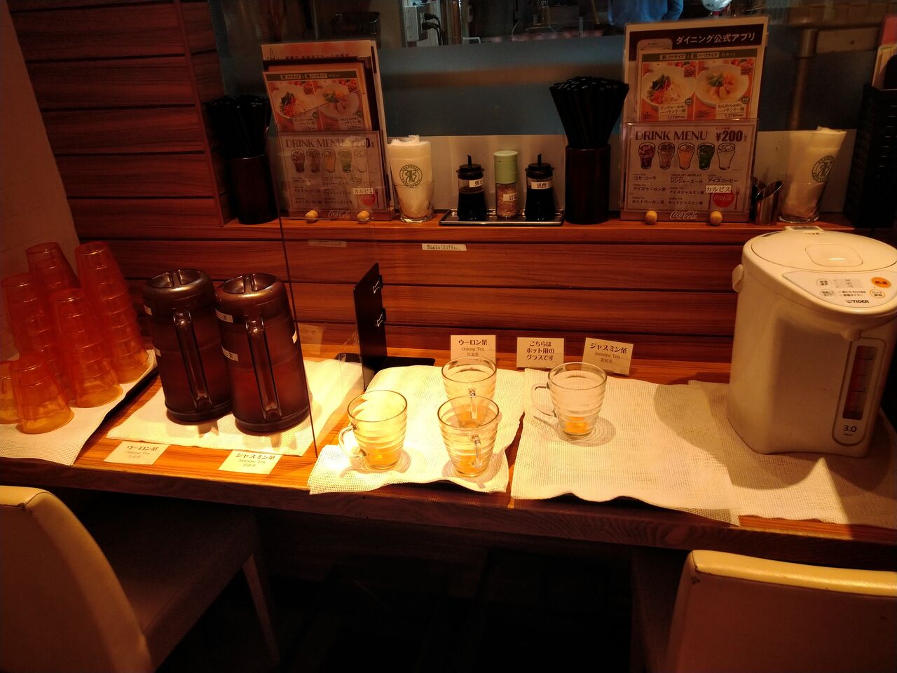 温かいウーロン茶やジャスミン茶もあるんだな。