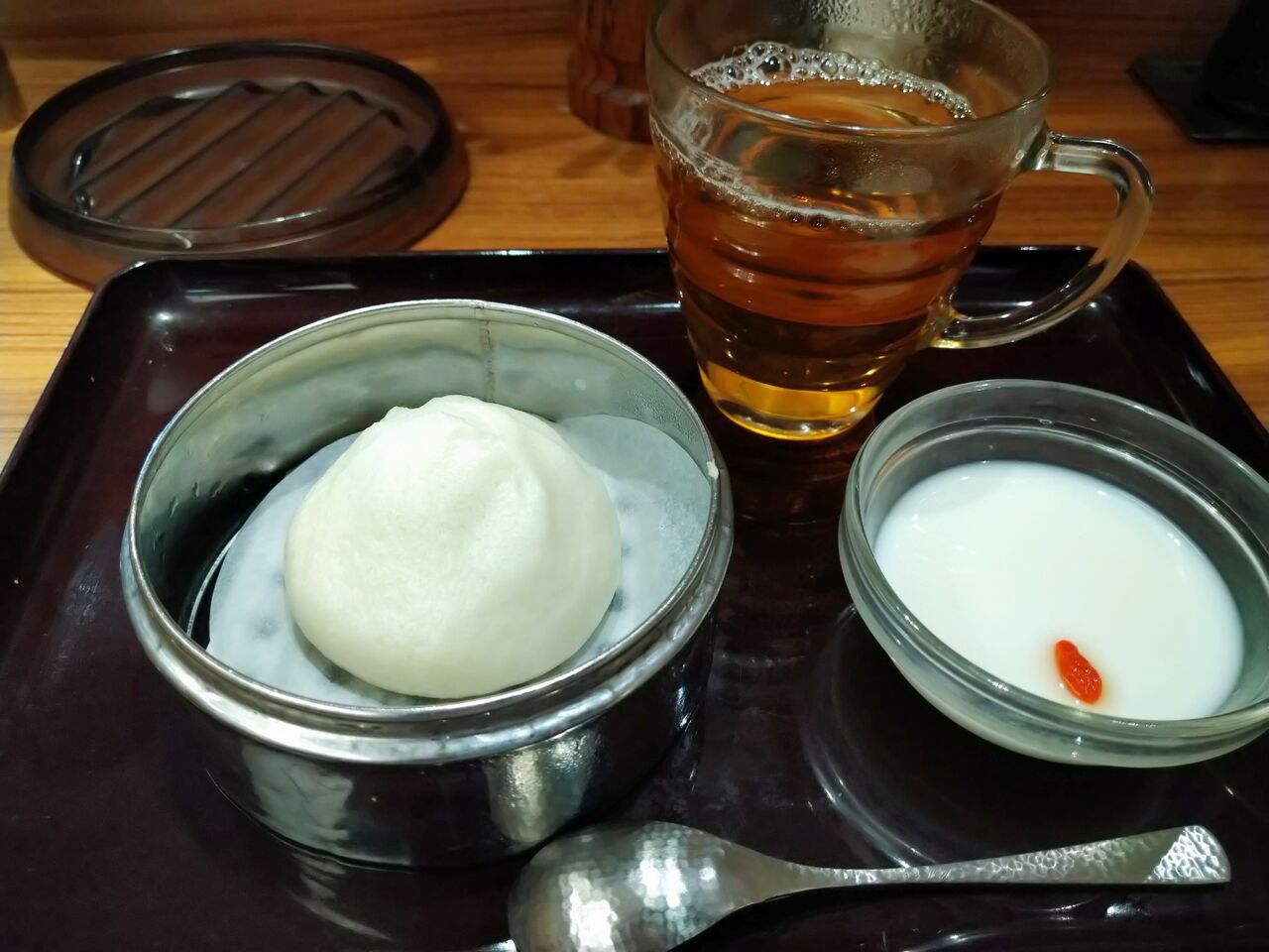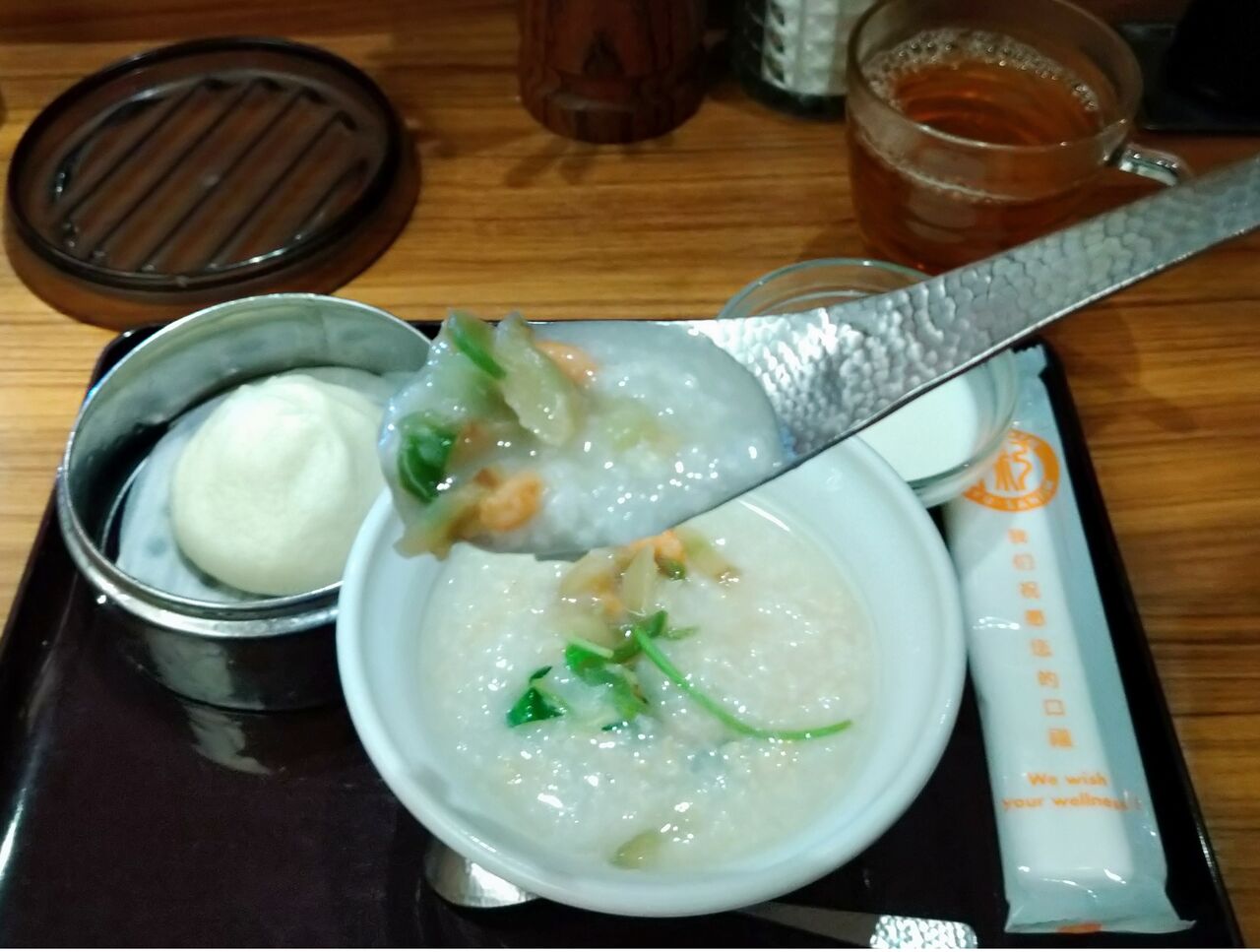 朝セットはお粥がハーフになって肉まんが付くのか・・・
