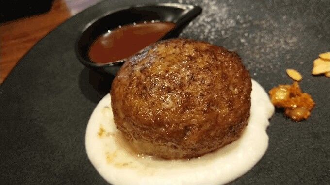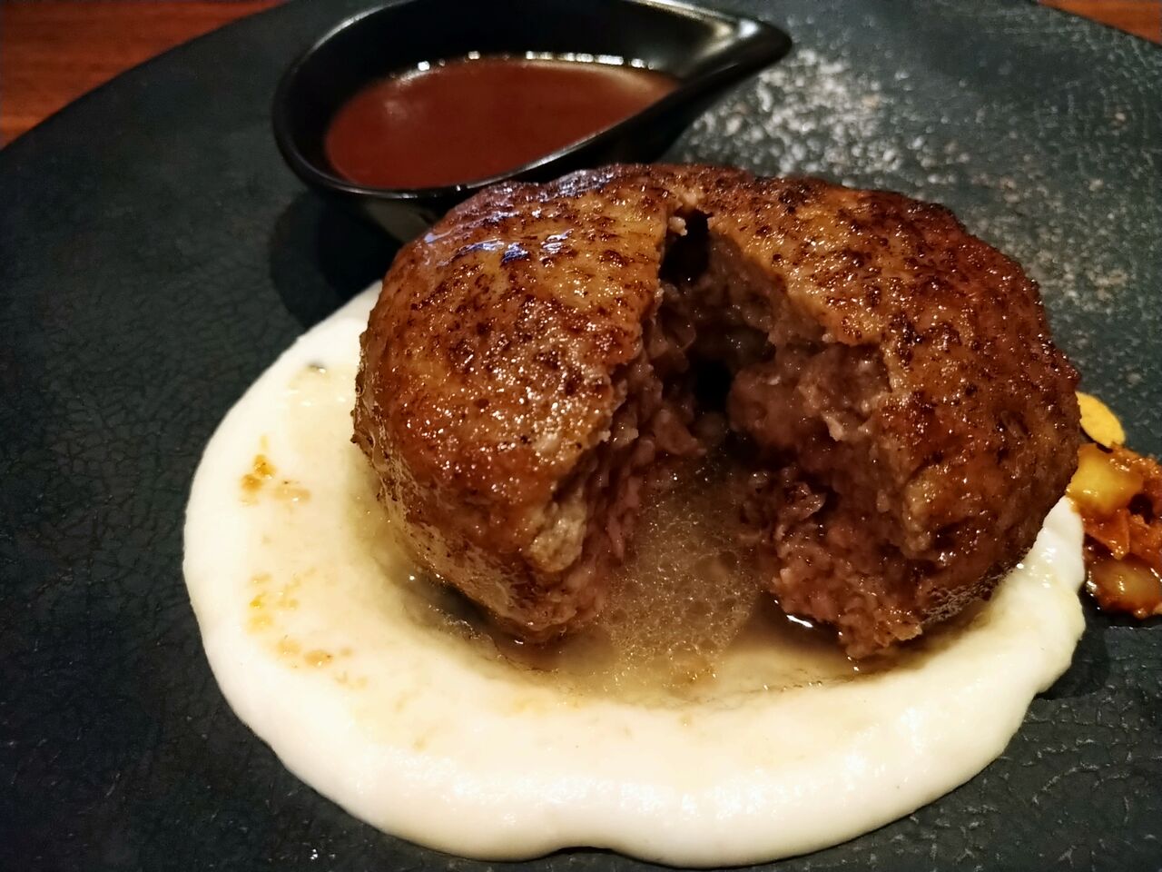 前菜が出た後、12分後に溶岩焼ハンバーグとステーキ丼が提供された。