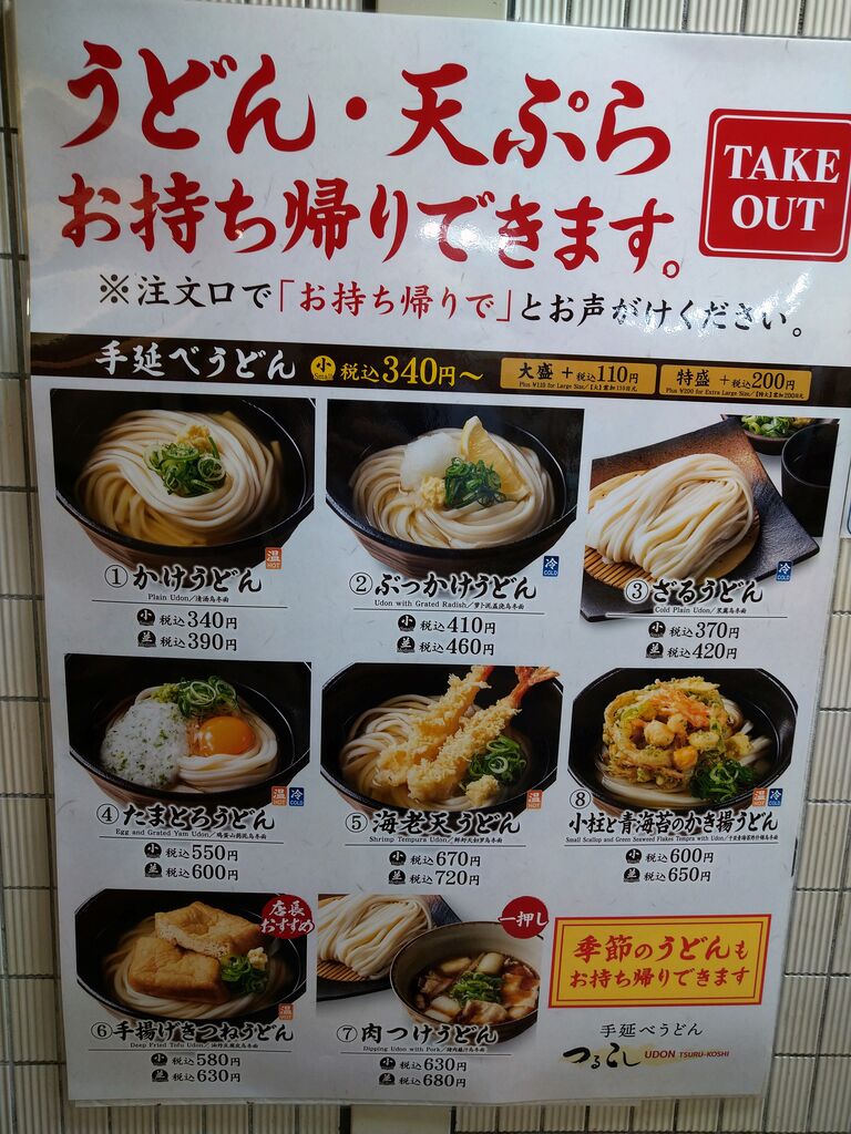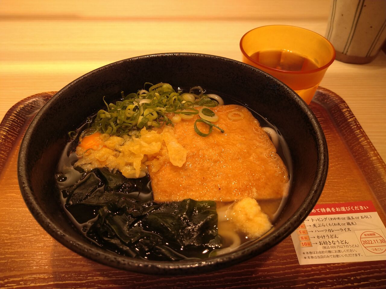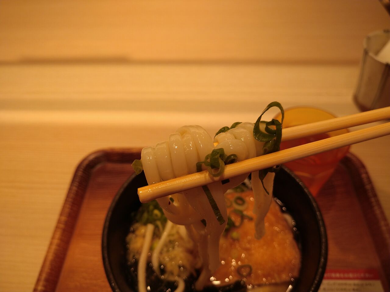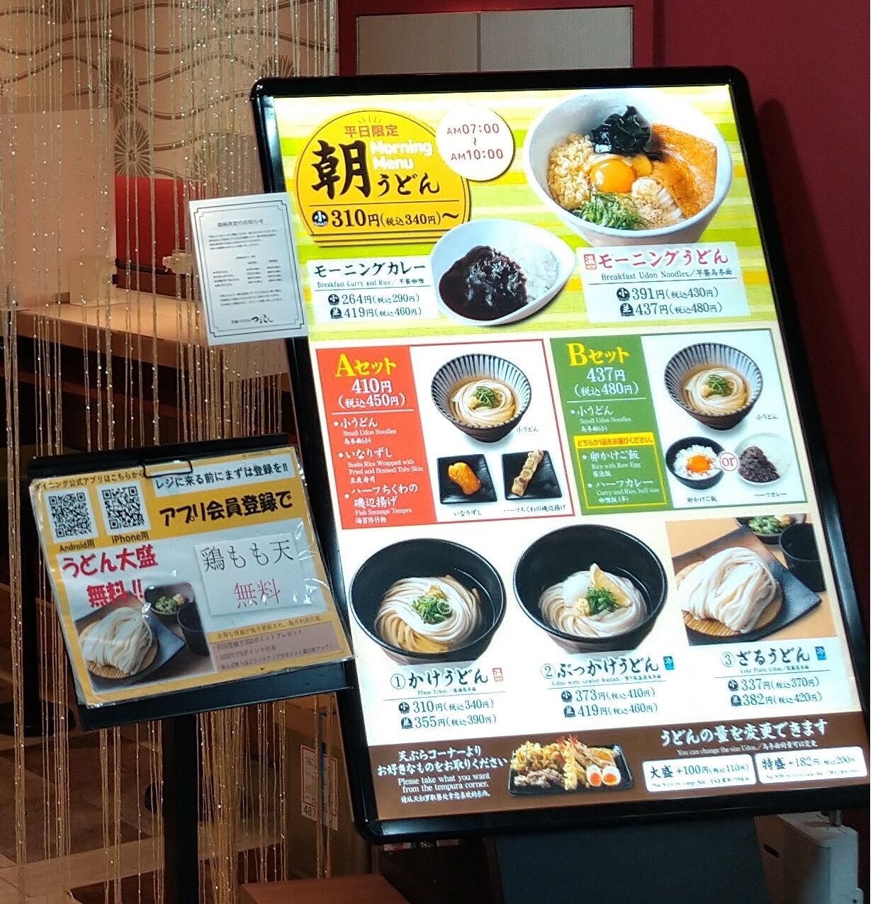 アプリ登録するとうどん大盛りか鶏モモ天が無料になったみたいだ。